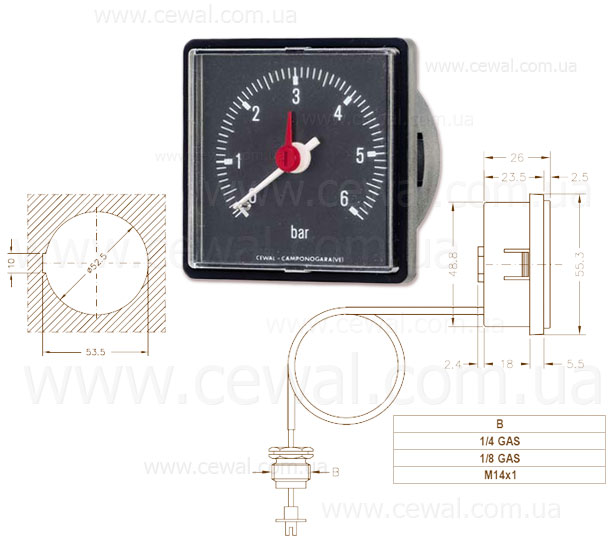 | 91400424 Cewal капілярний манометр | 52x52 ¼" 4 бар 1500 мм | креслення | |